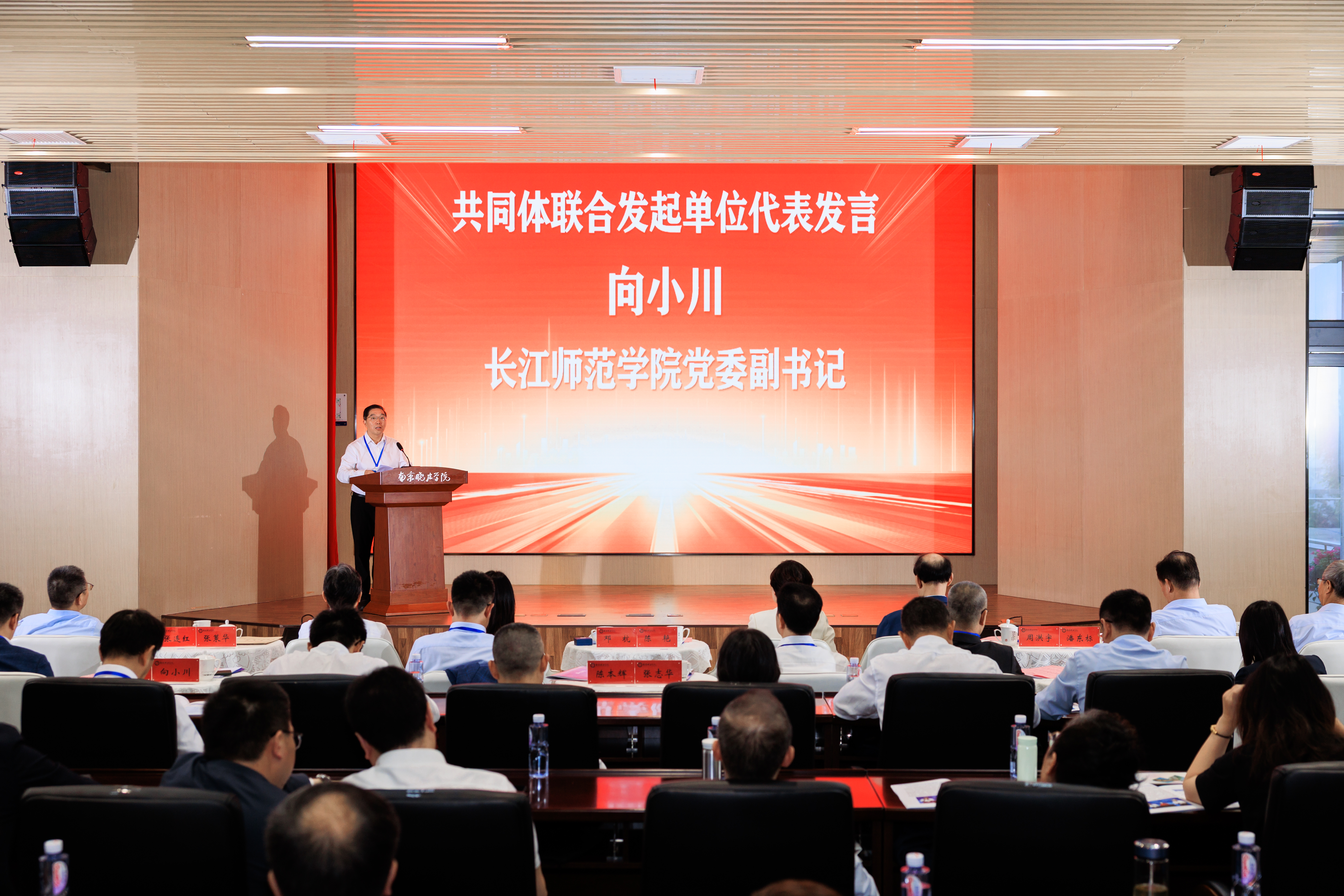 10月16日,“新时代强师成长共同体”成立仪式在南京晓庄学院行知园举行。教育部教师工作司师德建设处处长邓杭,江苏省教育厅副厅长陈艳,中国教育学会副会长周洪宇等领导嘉宾,以及国内外教育领域专家、师范院校师生代表、中小学及幼儿园负责人代表等近150人参会。长江师范学院作为共同体首批10家发起单位之一,党委副书记向小川受邀参会,并代表学校签署成立倡议书。