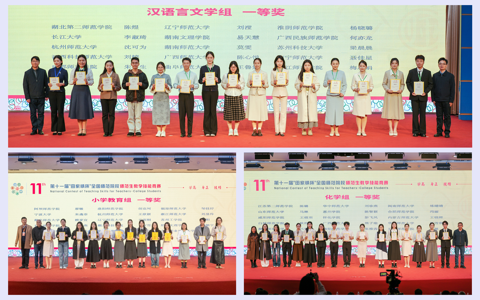 11月28日至30日,第十一届“田家炳杯”全国师范院校师范生教学技能竞赛决赛在浙江师范大学举行。我校学生共斩获一等奖3个、二等奖2个、三等奖6个,在汉语言文学组、小学教育组、化学组各荣获1个一等奖奖项。