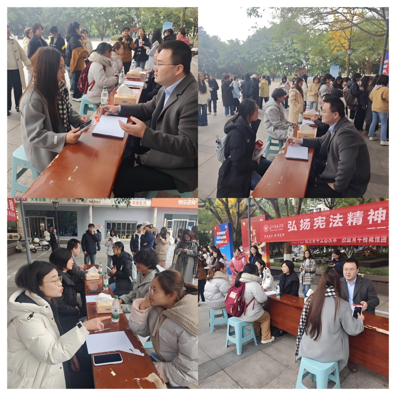 12月5日,时值第四个“宪法宣传周”,学校联合涪陵区司法局、重庆市律师协会开展“弘扬宪法精神,解答法律疑难——公益法律服务工作站现场咨询活动”, 深入学习贯彻党的二十大、二十届历次全会精神和全国、全市教育大会精神,着力加强校园宪法法治教育,培育知法、守法、用法的新时代青年。