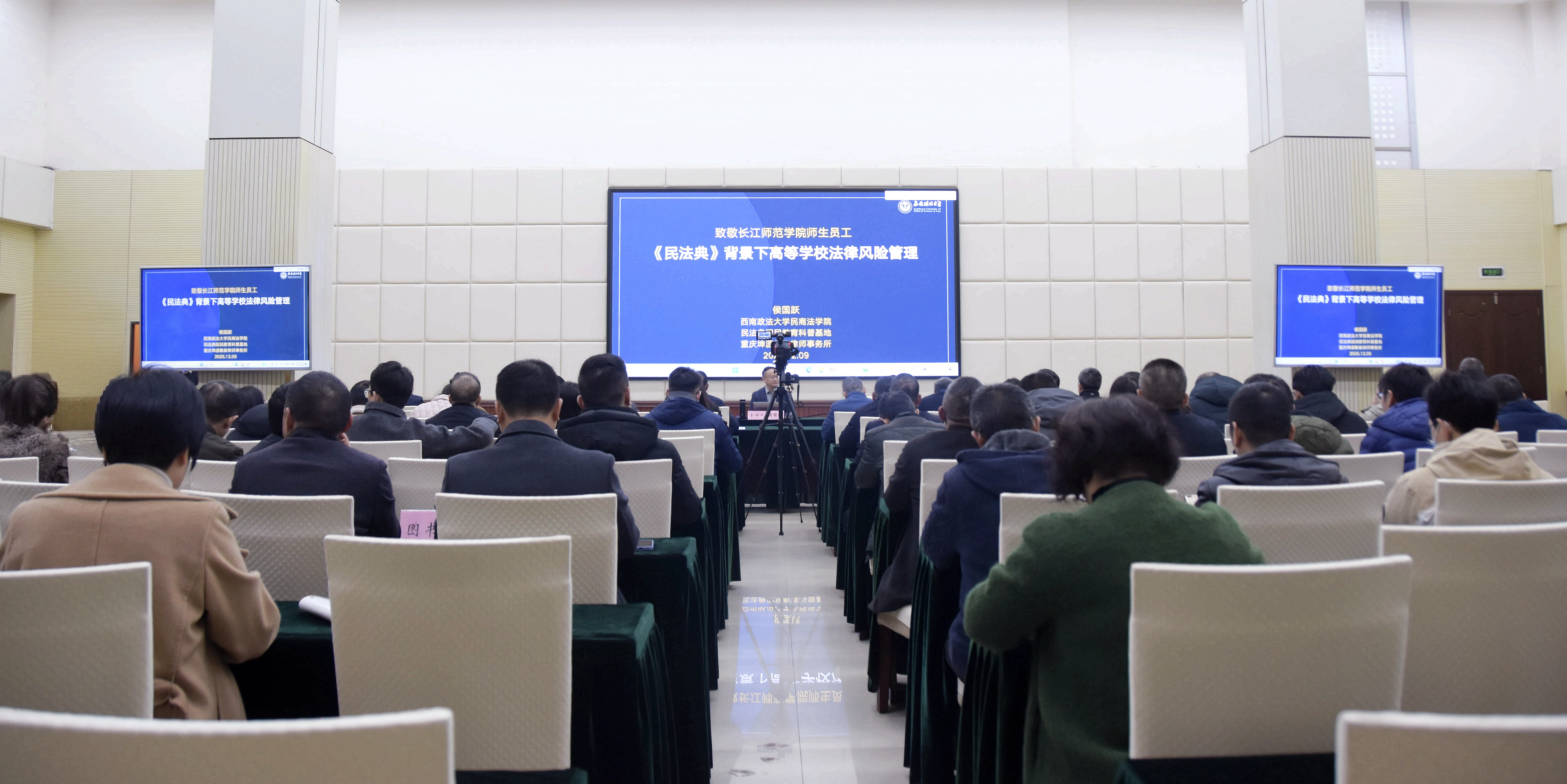 12月9日下午,学校党委理论学习中心组举行2025年第12次(扩大)学习会,邀请重庆市“百名法学家百场报告会”法治宣讲活动宣讲团成员侯国跃教授作专题辅导报告。党委书记黄大勇主持会议。全体校领导,全校副处级以上干部,党政办公室、人事处、学生工作处、教务处、财务与资产管理处、基建后勤处、采购与招投标管理中心科级干部,及各二级学院学工办主任共170人参加学习。