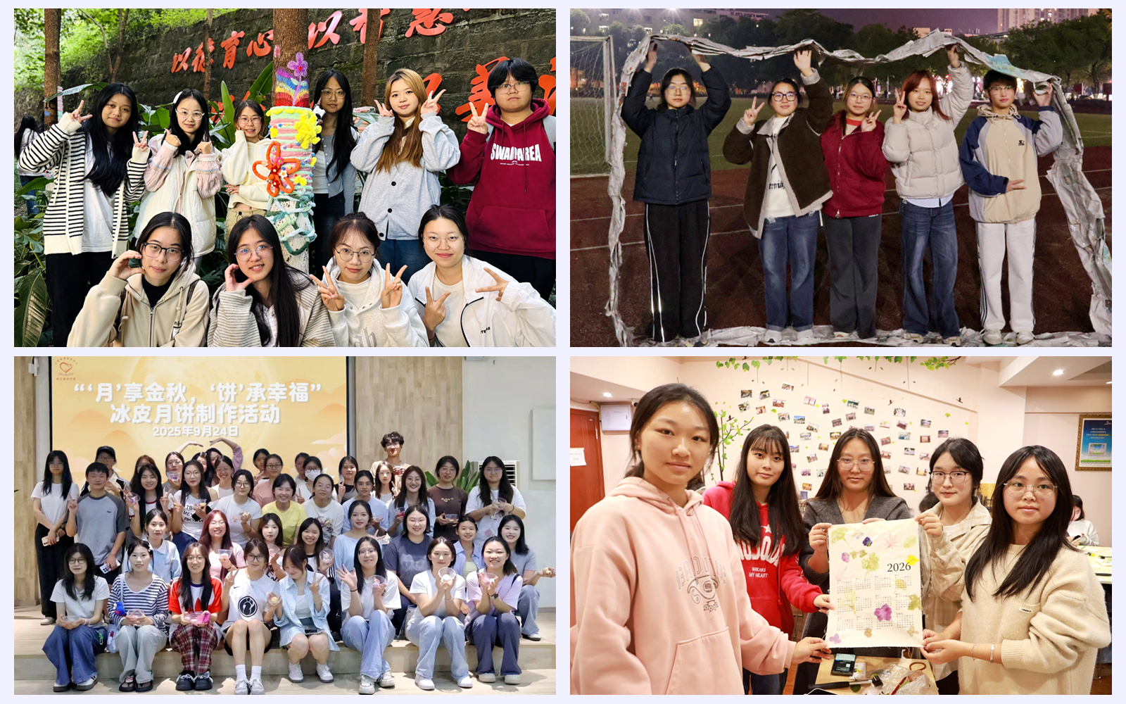 活动紧密围绕大学生“适应-成长-沉淀-冲刺”的学业发展节奏,遵循“协作破冰-创意共创-价值共鸣-团队凝聚”的团体辅导逻辑,以生活化、体验化、具象化的多元形式开展。“校园大树美化”活动通过涂鸦与编织艺术,激发创意表达,提升审美自信;“植物拓印创作”活动将德育内涵融入自然艺术,实现品格教育与美育的双重浸润;“心仪月饼制作”活动融合劳动教育与情感联结,在协作中增强集体归属与文化认同;“体育挑战赛”活动借助团队竞技形式,有效疏导压力,锤炼心理韧性。