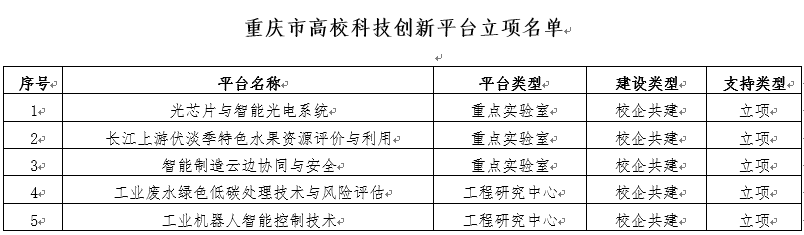 近日,重庆市教育委员会公布了2025年度高校科技创新平台立项(培育)名单,我校申报的“光芯片与智能光电系统重点实验室”等5个科技创新平台获批立项,获批数量达到我校历史新高,实现了科研工作从“单点突破”向“体系化布局”的历史性转变,完成了理工农学科单位省部级科技创新平台的全覆盖,现有省部级科研创新平台增至33个,为服务国家战略需求和地方经济社会发展提供了有力支撑。