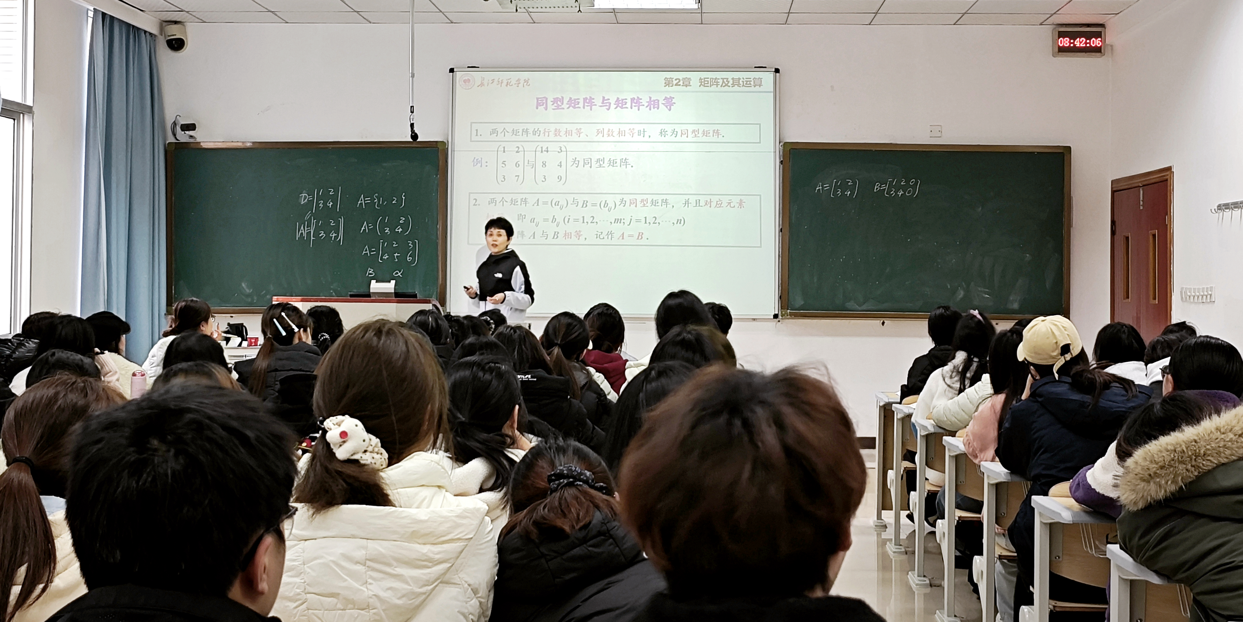 3月18日下午,冯俊娥教授深入课堂一线,以《线性代数》“线性方程组和矩阵”章节为教学重点,为师生带来一堂高质量示范课。授课过程中,冯教授紧扣核心知识点,从矩阵的定义、特殊矩阵的性质入手,层层递进引导学生理解线性方程组与矩阵之间的内在关联,耐心梳理知识脉络,引导学生主动思考,破解学习困惑。