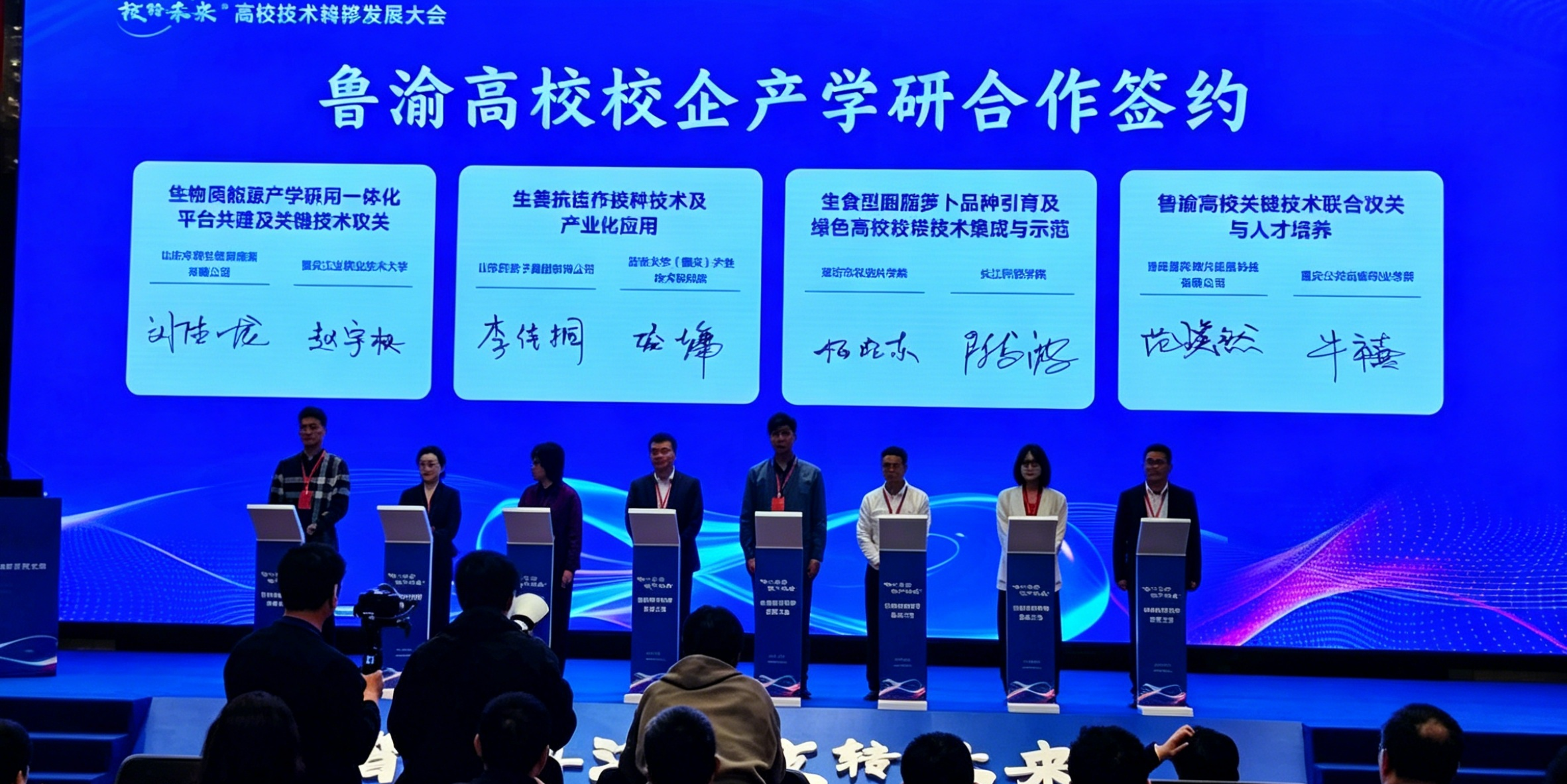 会议期间,我校代表与潍坊市农科院签订生食型胭脂萝卜品种引育及绿色高效栽培技术集成与示范协议。中国高等教育学会、鲁渝两地政府、高校、企业及科研院所代表等300余人出席活动。