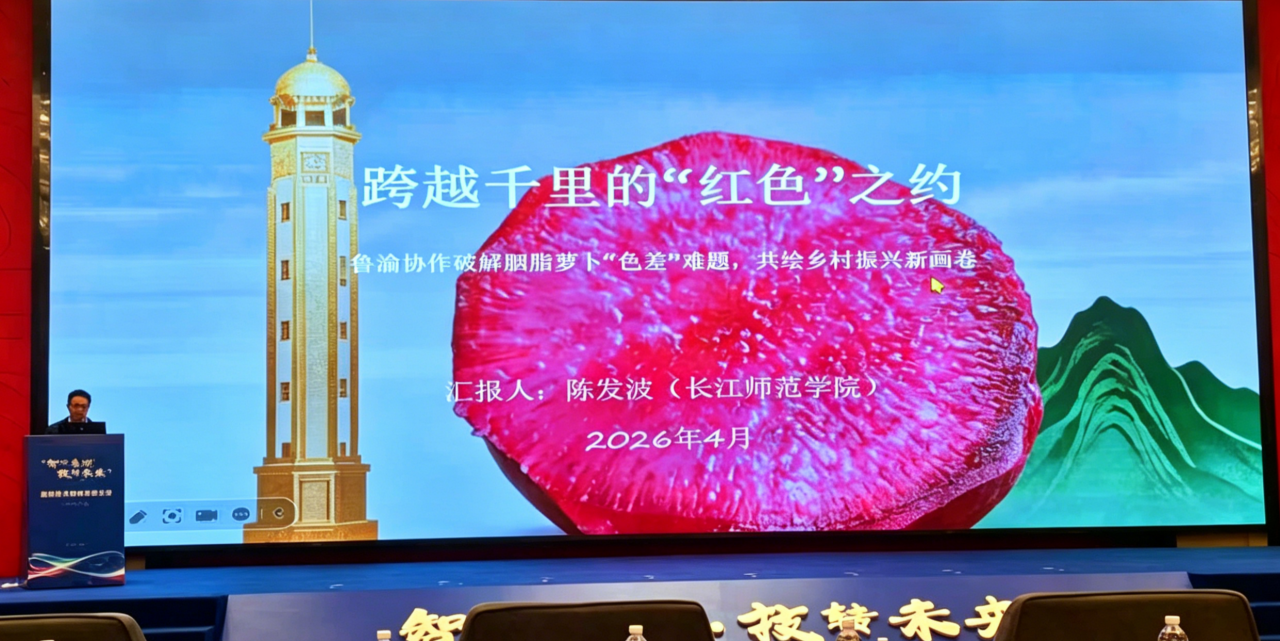 近日,“智汇鲁渝·技转未来”高校技术转移发展大会在重庆举行。我校现代农业与生物工程学院陈发波教授团队的协作成果《跨越千里的“红色”之约——鲁渝协作破解胭脂萝卜“色差”难题,共绘乡村振兴新画卷》作为典型案例,进行了专题分享。该成果首次建立萝卜颜色与色素色差线性模型,选育出全国首个紫皮紫心萝卜品种,累计推广13000亩,带动农民增收124.8万元,企业增效520万元。