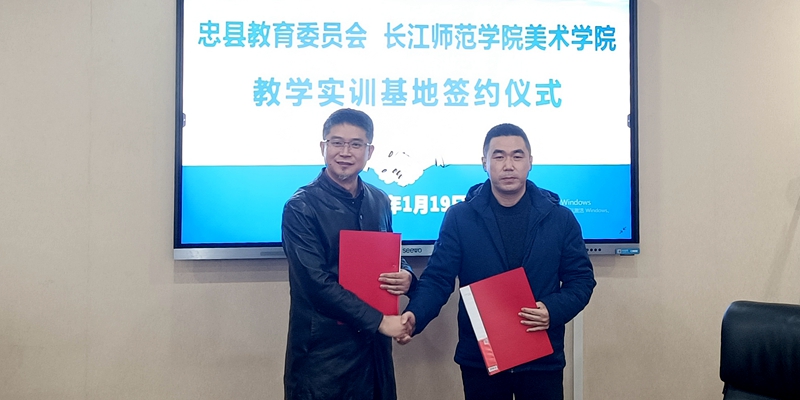 当天上午,教学实训基地签约仪式在忠县教委会议室举行,忠县教委主任易会与美术学院负责人签署合作协议。忠县人大副主任陶卫东出席会议,并对双方的合作寄予厚望,希望双方携手为乡村振兴、人才培养、平台搭建作出贡献。