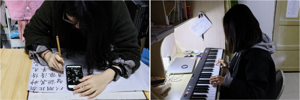 教师教育学院成立了在线教学领导小组,制定网上教学预案、教学计划,每天到任课教师网上班级进行听课、及时反馈意见,更定期深入学生宿舍调研线上教学效果。该院老师认真备课,提前准备课程大纲、课件、教案和教学进度计划表,依托腾讯会议、钉钉和腾讯课堂等平台,反复进行线上测试,精心制作多个在线教学预案。该院学生也严谨自律,线上学习不迟到、不早退,认真听讲、积极提问,课后认真完成作业、做好预习复习,结合专业技能要求自主进行书法练习、海报设计、乐理学习……即使在特殊时期,同学们也仍然不打折扣认真学习。