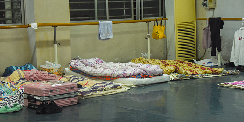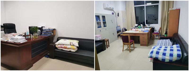 “今天是我住在办公室的第16天,这段时间虽然辛苦,但是大家众志成城的信念让人感动。”党政办公室行政科科长段剑波说。在启动静态管理的当天,校领导、各二级单位、各岗位负责人纷纷进驻校园值班值守,白天忙碌疫情防控、教育教学工作,晚上则睡在办公室,他们有的睡在行军床上、有的用沙发当床,还有的用凳子“凑”一个床铺……正是这群在关键时刻勇担当、做表率的教职工们,长师才能始终将疫情阻击在校门之外。
