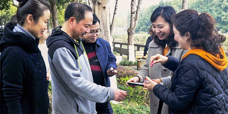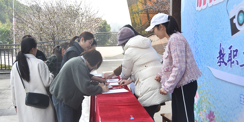 活动起点设置在行知体育场,沿大江风骨、鉴湖环路,以拏云学生活动中心为终点,中途设4个“打卡”点,参加活动的教职工需要步行并拍摄校园美景。活动得到了教职工们的热烈响应,在结束了上午的工作后,教职工们陆续到行知体育场领取卡片“打卡”,或成群结伴,或三两为伍,兴致勃勃、欢声笑语地向下一站走去。
