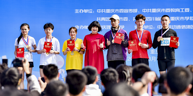 日前,由中共重庆市委宣传部、中共重庆市委教育工委、重庆市教委、共青团重庆市委、共青团四川省委、重庆市学联、四川省学联联合举办的“学习二十大、永远跟党走、奋进新征程”第42届“动感地带”川渝“校园之春”文化艺术体育活动在两江协同创新区明月湖开幕。开幕式后,全市70所高校、近400名师生参加了“奋斗的丰碑”寻访体验马拉松活动,我校体育与健康科学学院选拔组建的“长师青年”团队在活动中斩获佳绩,团队6人分别荣获男子第3、第6、第10名与女子第7、第8、第30名的好成绩。