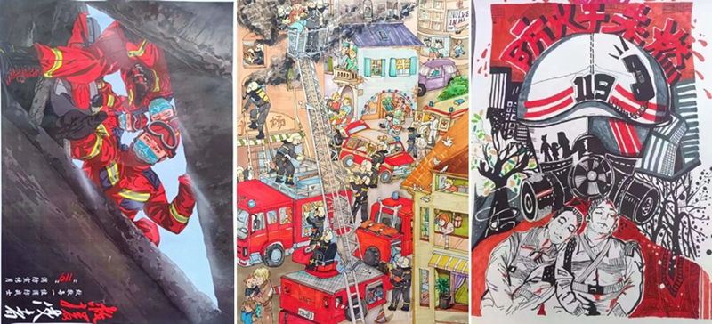 消防安全书画评比大赛面向全体在校学生开展,分为绘画专业组、绘画非专业组、书法组三个组别。大赛共收到作品595件,经过专家评审,评选出获奖作品60件,其中,绘画专业组10件,绘画非专业组30件,书法20件。