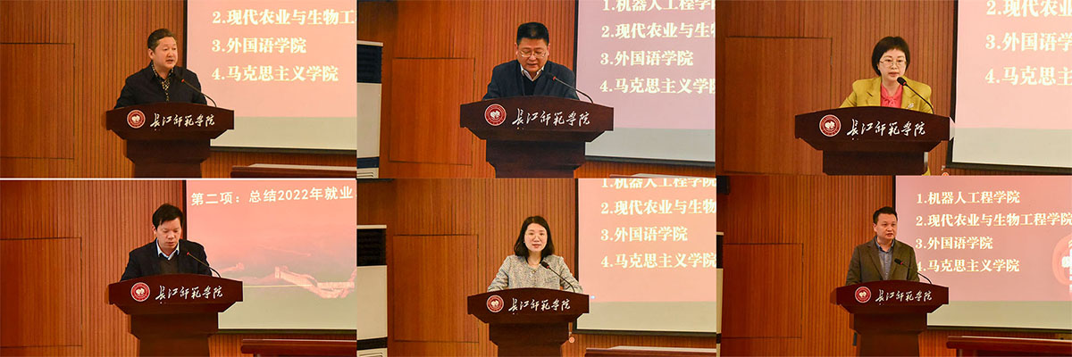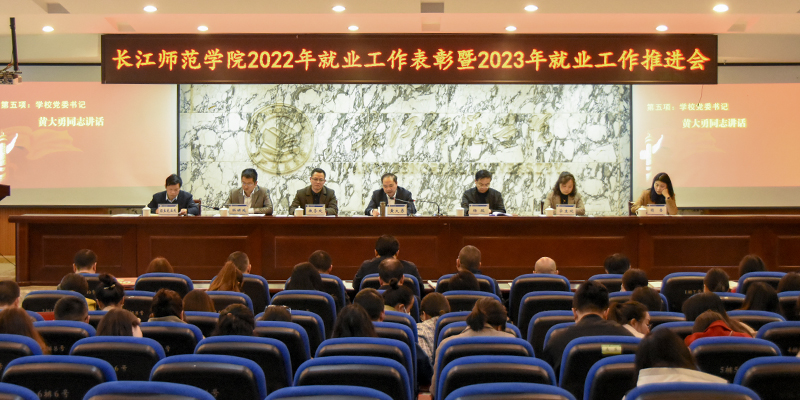 会议通报了2022届毕业生就业总体情况,对2023届毕业生就业工作进行了安排部署;会议宣读了《长江师范学院关于表彰2022年度就业工作先进集体、先进个人的决定》,为就业指导先进集体与先进个人颁奖,二级学院代表签订了《2023届毕业生就业工作目标责任书》。受表彰的先进集体、先进个人代表交流分享了就业工作经验。