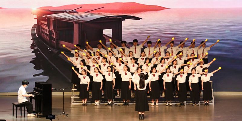 在“耕红色文化 铸小教师魂——小教音乐基础”主题展演中,该院学子通过红歌合唱、自弹自唱、红歌独唱、器乐独奏等多种形式,演绎了《忆党史•铭师志》《学党旨•立师德》《感党恩•扬师风》《挥党旗•铸师魂》四个篇章。《绒花》《十送红军》《游击队之歌》《不忘初心》《江山》等经典歌曲被同学们深情演唱,以优美激扬的乐曲和歌声礼赞党的新时代,与现场师生一起重温党在沧桑巨变中救国、兴国、富国、强国的奋斗之路。