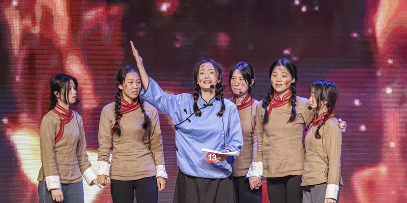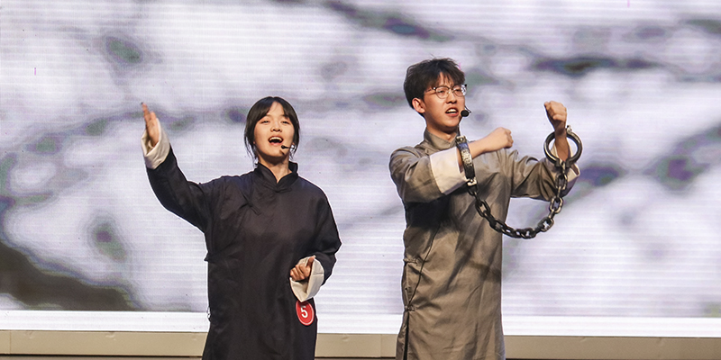 故事讲述组共有16支队伍进入决赛现场,参赛选手们对革命先烈的故事和“红岩”精神的内涵进行生动展现和深刻阐述。教师教育学院同学们在《“努力”同心存傲骨 “大声”疾呼铸英魂》故事中,讲述了车耀先不顾安危创办《大声》周刊,宣传革命思想的感人故事;国际学院王力带来的《寻梦长师——我的中文学习故事》,以自身经历为背景,展现了中华文化的影响力;传媒学院《以红岩之心 护国家安全》阐述“红岩”精神的深刻内涵,呼吁同学们奋勇前进、报效祖国。