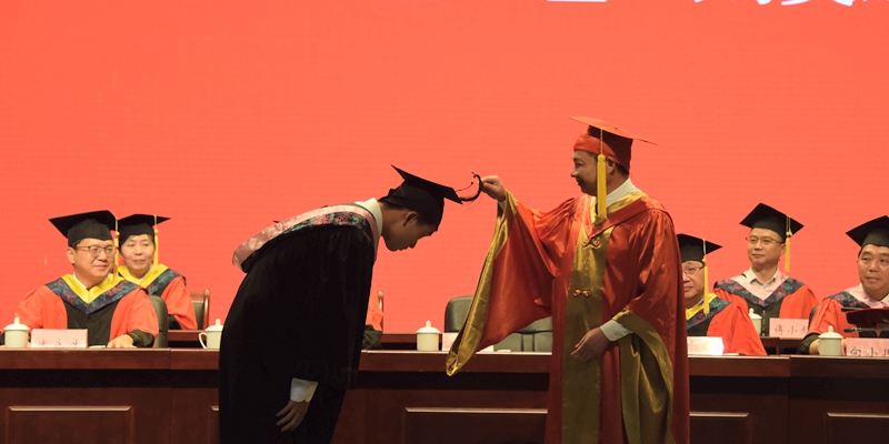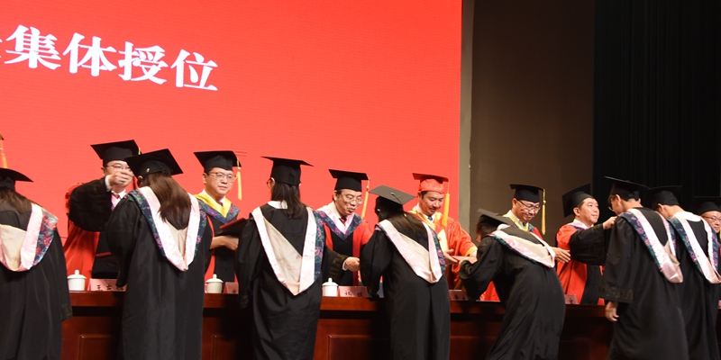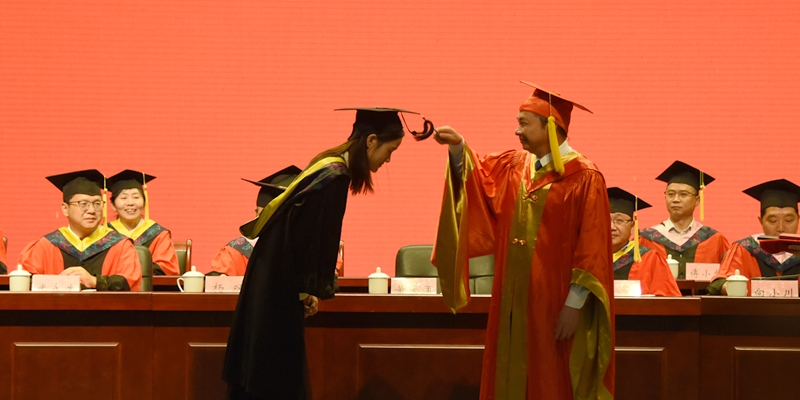 党委书记黄大勇逐一为市级优秀大学毕业生代表、校级优秀大学毕业生代表、考取重点院校研究生毕业生代表、获得学科竞赛国家级奖项毕业生代表拨穗正冠,并颁发毕业证书及学位证书。