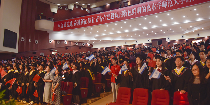 “你们攻坚克难、勤奋学习,创造了一个又一个奇迹,1096人光荣加入了中国共产党、 822人上线硕士研究生、学科竞赛获得市级以上荣誉800余项……”副校长杨双以《以奋斗姿态激扬青春 以实学实干共铸未来》为题向全体毕业生致辞,他向毕业生们提出四点希望:一是明确奋斗的“风向标”,信念坚定、视野开阔、内心温暖;二是握紧前进的“方向盘”,学会识己、学会选择、学会坚守;三是争做时代的“弄潮儿”,勇于面对、练就硬脊梁,敢于负责、练就宽肩膀,善于作为、练就真本领;四是系好人生的“安全带”,知敬畏、存戒惧、守底线。