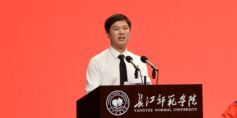 “感恩母校为我们提供了优质的教育资源和良好的学习环境,感恩老师对我们的辛勤付出和指导……”毕业生代表、管理学院学生唐杰讲述了自己投身科创竞赛、志愿服务、摘取“互联网+”全国铜奖以及成立科技公司的经历,感谢了母校的培养、师长的指导,并祝福长师蓬勃发展、再攀高峰。