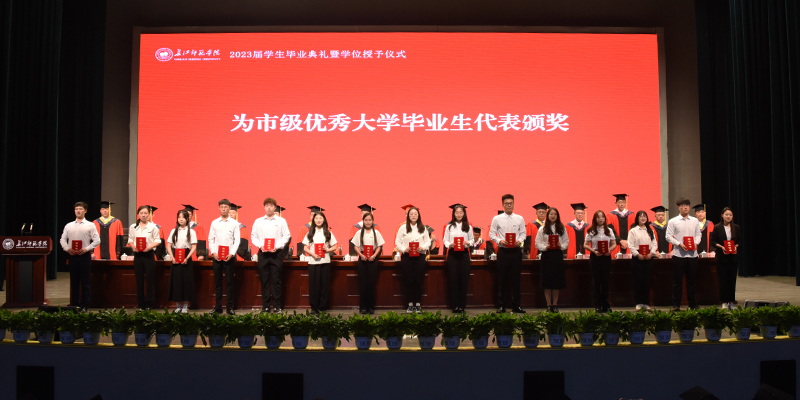 典礼宣读了市级优秀大学毕业生表彰决定、校级优秀大学毕业生表彰决定、2023届毕业生授位决定。学位评定委员会委员为540名毕业生代表颁授毕业证书、学位证书。