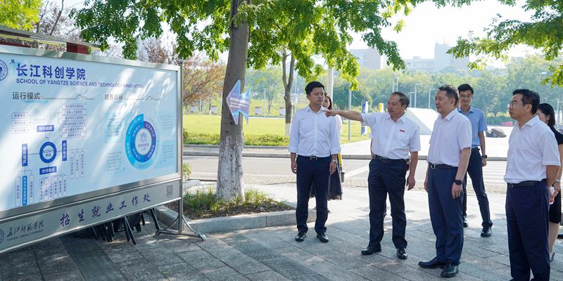 廖传锦一行先后考察了慧谷湖科创实验班、微纳光电器件与智能感知系统重点实验室、思想政治理论课英模教育基地、“彩虹之家”筑梦实践团建设情况,并听取工作汇报。