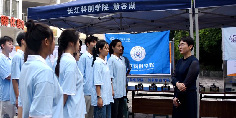 杨燕滨与慧谷湖科创实验班的同学们亲切交流学习生活情况,观看了同学们设计研制的作品,走访考察了长江科创学院创新创业孵化、体制机制、平台建设、运行管理等情况。