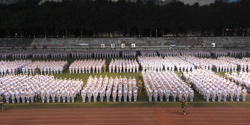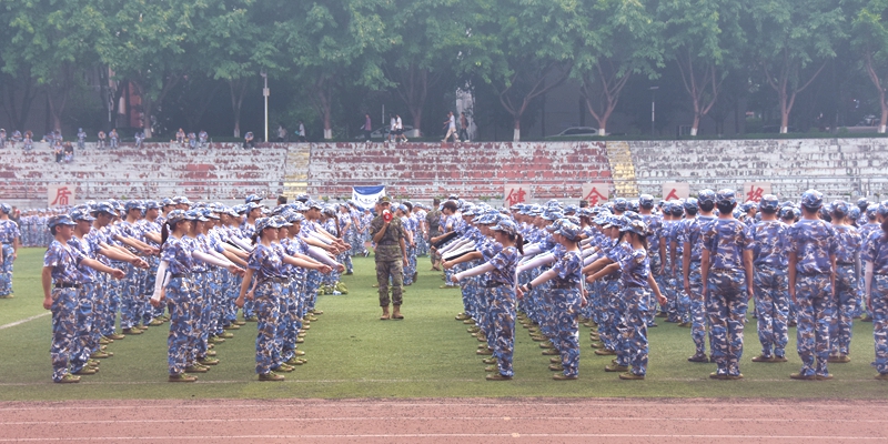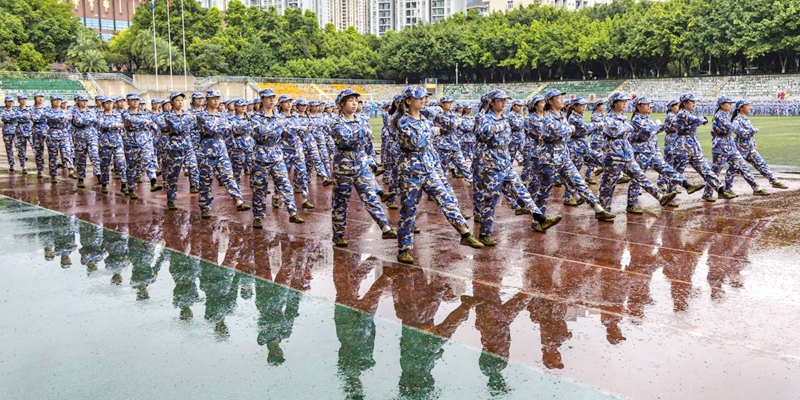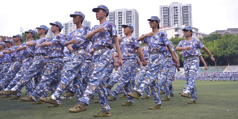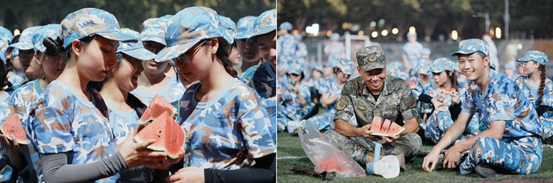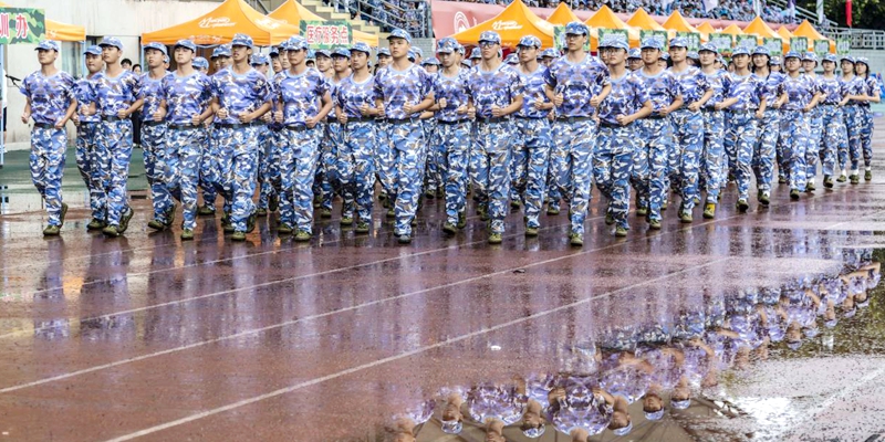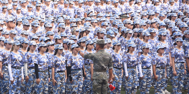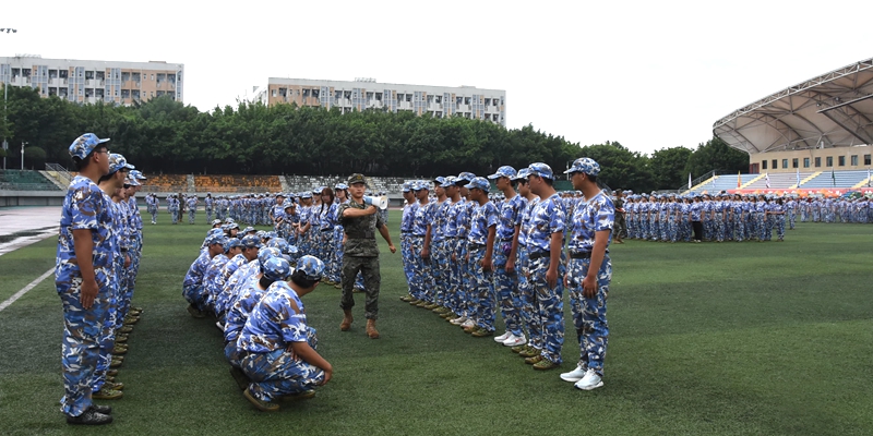 在训练场上,新生们身着统一迷彩服,整齐地站着军姿,有力地踏着正步,喊着响亮的口号,唱着激昂的军歌......教官们严格指导新生们整理军容、端正军姿,并亲自示范标准动作,手把手进行纠正。无论是高温灼烤,还是初秋的细雨,都没有击退同学们的坚定意志,军训服湿了又被烤干,没有人轻言放弃。校医院、各二级学院也细致地安排好了后勤工作,设立了休息站、备好了热水、消暑药品和急救物品,保障同学们的健康安全。