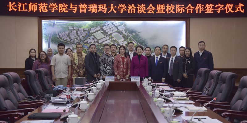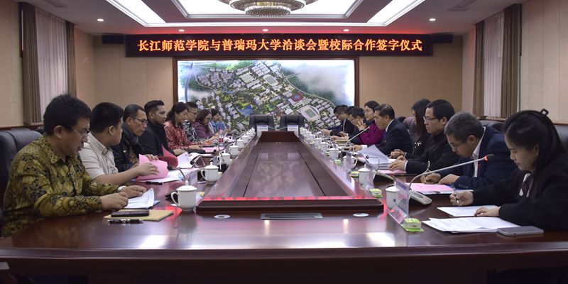 11月13日上午,长江师范学院与普瑞玛大学洽谈会暨校际合作签字仪式在致远楼525会议室举行。普瑞玛大学校长Chrismis Novalinda Ginting、副校长Abdi Dharma、Ali Napiah Nasution一行8人,我校校长杨燕滨、副校长向小川,相关职能部门、二级学院负责人参加会议。