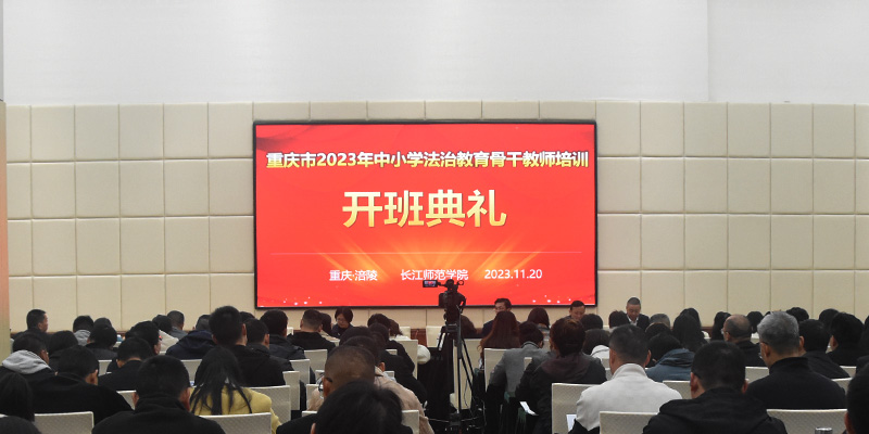 11月20日上午,重庆市2023年中小学法治教育骨干教师培训在我校致远楼101会议中心开班。重庆市教委政策法规处处长文像阳及来自重庆市38个区县的138名法治教育骨干教师参加开班仪式。副校长杨双出席典礼。