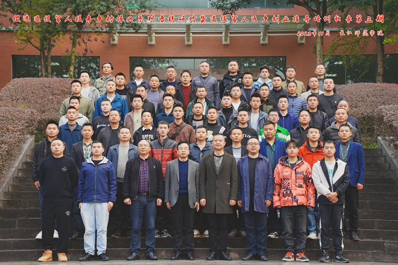 11月27日上午,2023年促进退役军人投身乡村振兴系列专题研修暨退役军人返乡创业指导培训(秋季第三期)在我校格致楼2308会议室开班行课。副校长杨双,重庆市军培中心三部部长郑潇、副部长李家龙出席开班式。