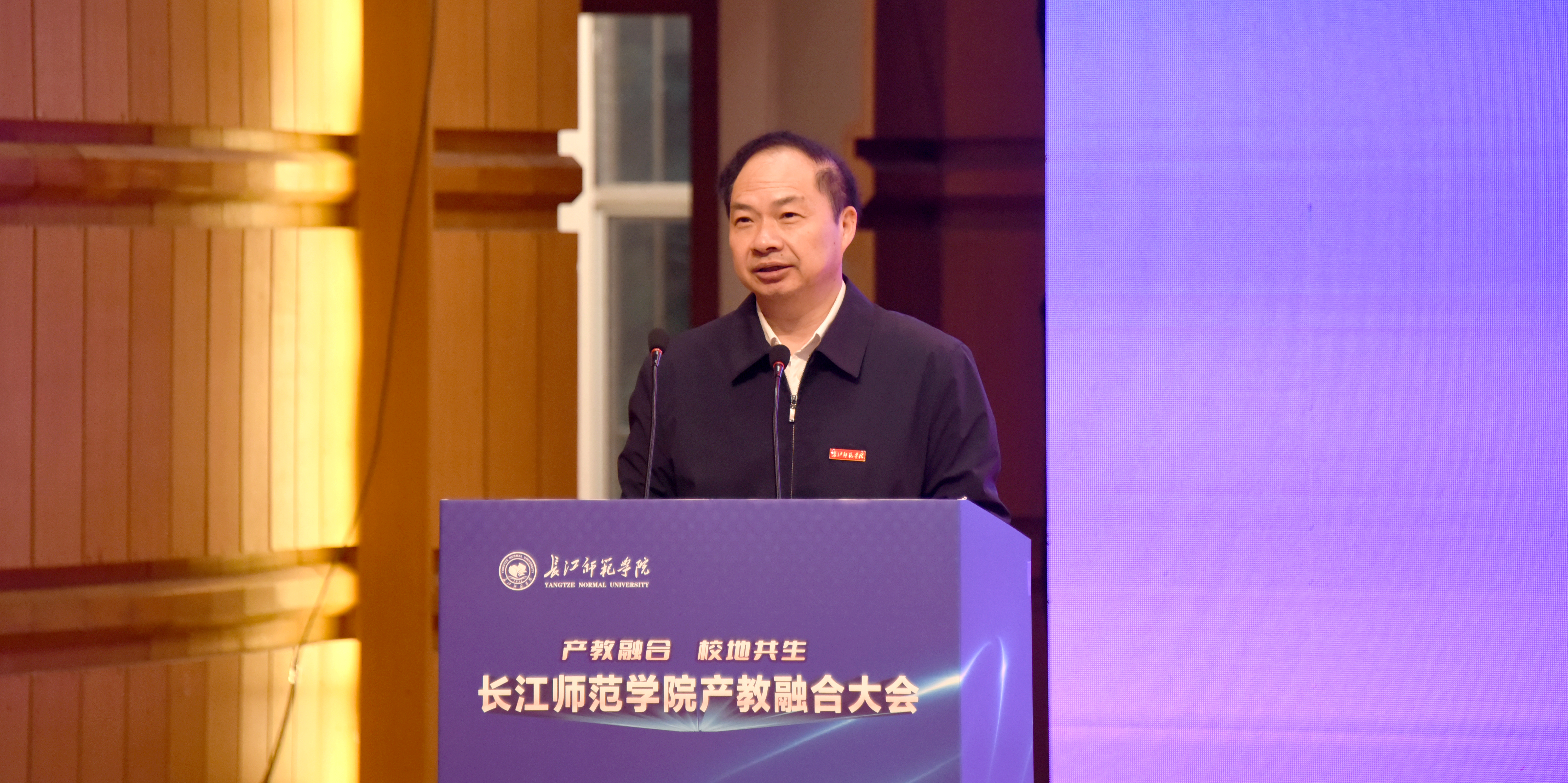 高帆做总结讲话,他从学校建设、产业发展、生态构建三个方面介绍涪陵区深化产教融合的工作举措与成效,充分肯定了长江师范学院在服务支撑涪陵产业发展中的作用与贡献。他表示,涪陵区将进一步深化与学校的合作,助力学校做强做优特色学科,创新人才培养模式,构建完善以产业需求为牵引、以科技创新为驱动的实践育人体系,鼓励引导校企联合开展核心技术攻关,促进科技成果向生产一线转化,推动教育链、人才链与产业链、创新链深度耦合,实现校地企融合高质量发展。