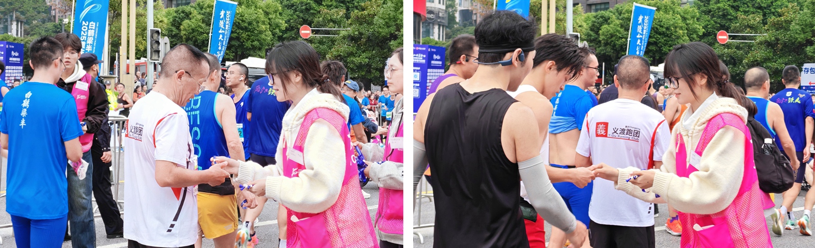 抵达现场后,志愿者们迅速奔赴岗位,在赛道引导、存包引领、半程检录、检查赛道、物品发放、安检协助、兴奋剂检测等关键环节默契配合、奔走忙碌,保障赛事顺畅进行。