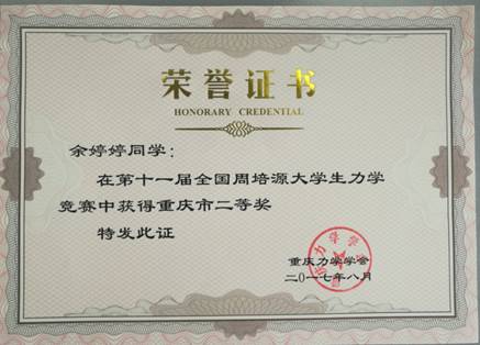 2017年8月14日,第十一届全国大学生周培源力学竞赛在湖南大学落下帷幕,土木建筑工程学院学生余婷婷获得重庆市二等奖,付杨红、吴丹获得重庆市三等奖,徐俊欣、李红平等10名同学获得重庆市优秀奖。
