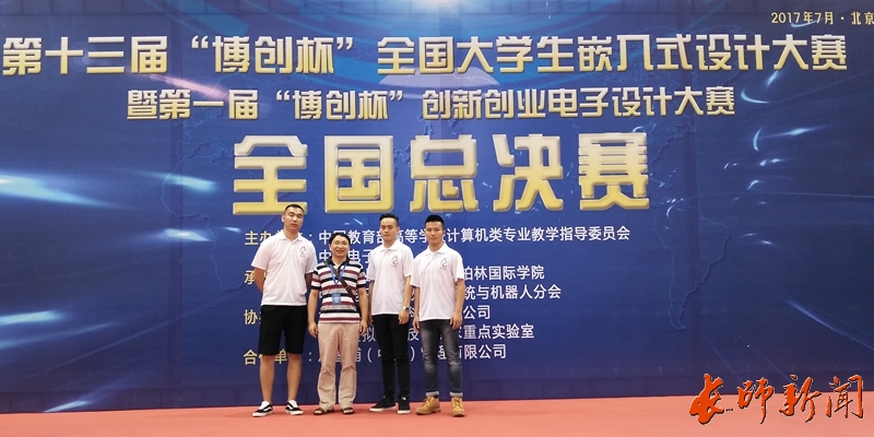 2017年7月14日至16日,第13届全国嵌入式设计大赛暨第一届“博创杯”创新创业电子设计大赛全国总决赛在北京工业大学举行。我校大数据与智能工程学院罗尧、文宏川、陈亚东和杨兰召同学设计的“智能监控小车”项目获得了全国总决赛三等奖。