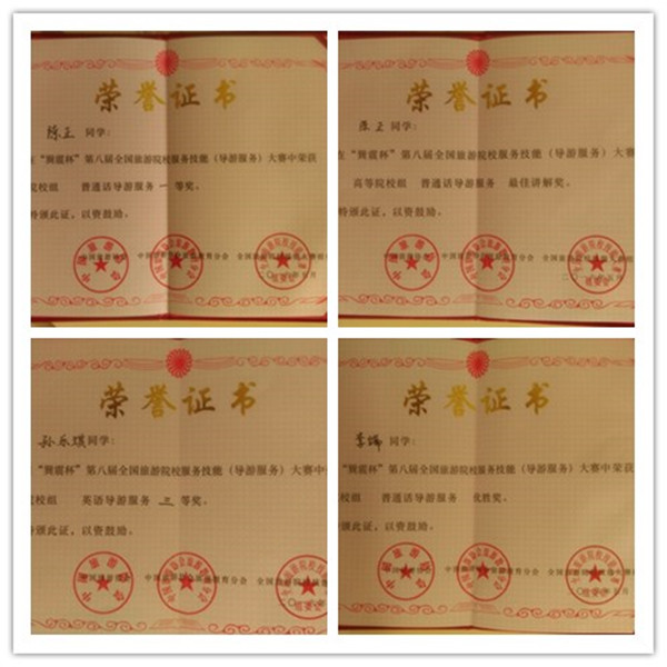 2016年5月,在第八届全国旅游院校服务技能(导游服务)大赛中,管理学院组成的参赛队获得优异成绩。13级旅游管理专业学生陈正以总分94.447的成绩在来自全国272所高等院校的500名选手中排名第四,获得中文讲解组一等奖,并以精彩的景点解说技能获得个人最佳讲解单项奖;13级旅游管理专业的孙乐琪同学以总分83.94的成绩获得英文讲解组三等奖。