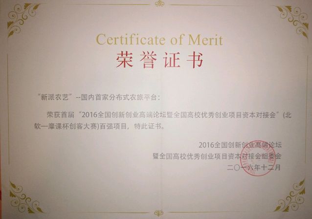 2016年12月,在“2016全国创新创业高端论坛暨全国高校优秀创业项目资本对接会”上,财经学院学子作品《“新派农艺”——国内首家分布式农旅平台》荣获百强项目。