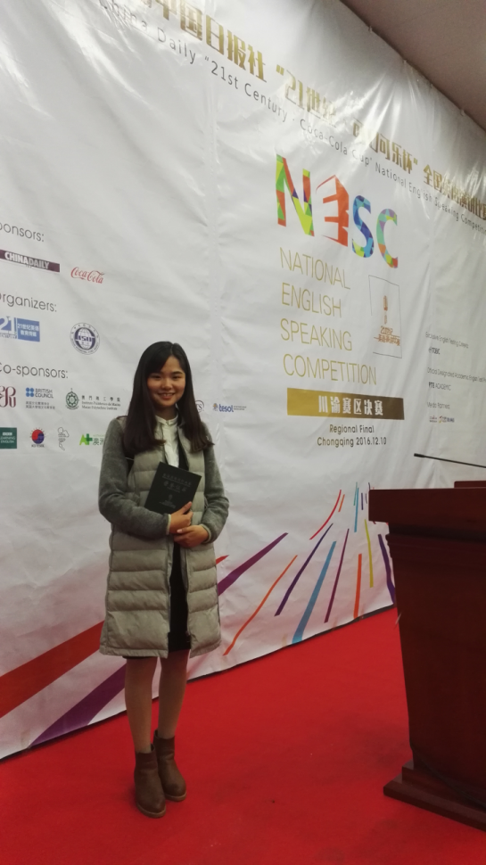 2016年12月10月,在“21世纪全国英语演讲比赛”中,外国语学院学子万亚男获得二等奖。