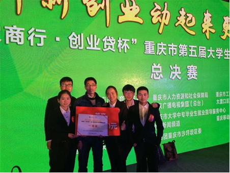 2015年12月15日,重庆市“农商行·创业贷杯”第五届大学生创新创业大赛总决赛在四川美术学院落下帷幕。现代农业与生命工程学院“仿生开拓者联盟”团队的“便携式仿生食品品质快速分析仪”(作者:段建礼、郑伟伟、李志强、刘锐、胡妮汶,指导老师:孙钟雷)入围总决赛并喜获一等奖。