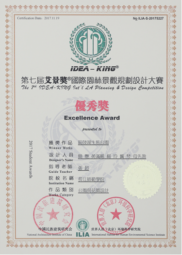 2017年11月19日,第七届艾景奖•国际园林景观规划设计大赛圆满落幕。现代农业与生命工程学院园林专业简艳、龚琴、杨玲、黄满畅、母先盈同学凭借《铜鼓湖生态公园》的设计方案荣获本次比赛本科组之中公园与花园设计类别优秀奖,陈怡、刘双娇、谭晶晶、田巧同学凭借《源于自然,归于自然——铜鼓湖生态湿地》的设计方案荣获本次比赛本科组之中公园与花园设计类别优秀奖。