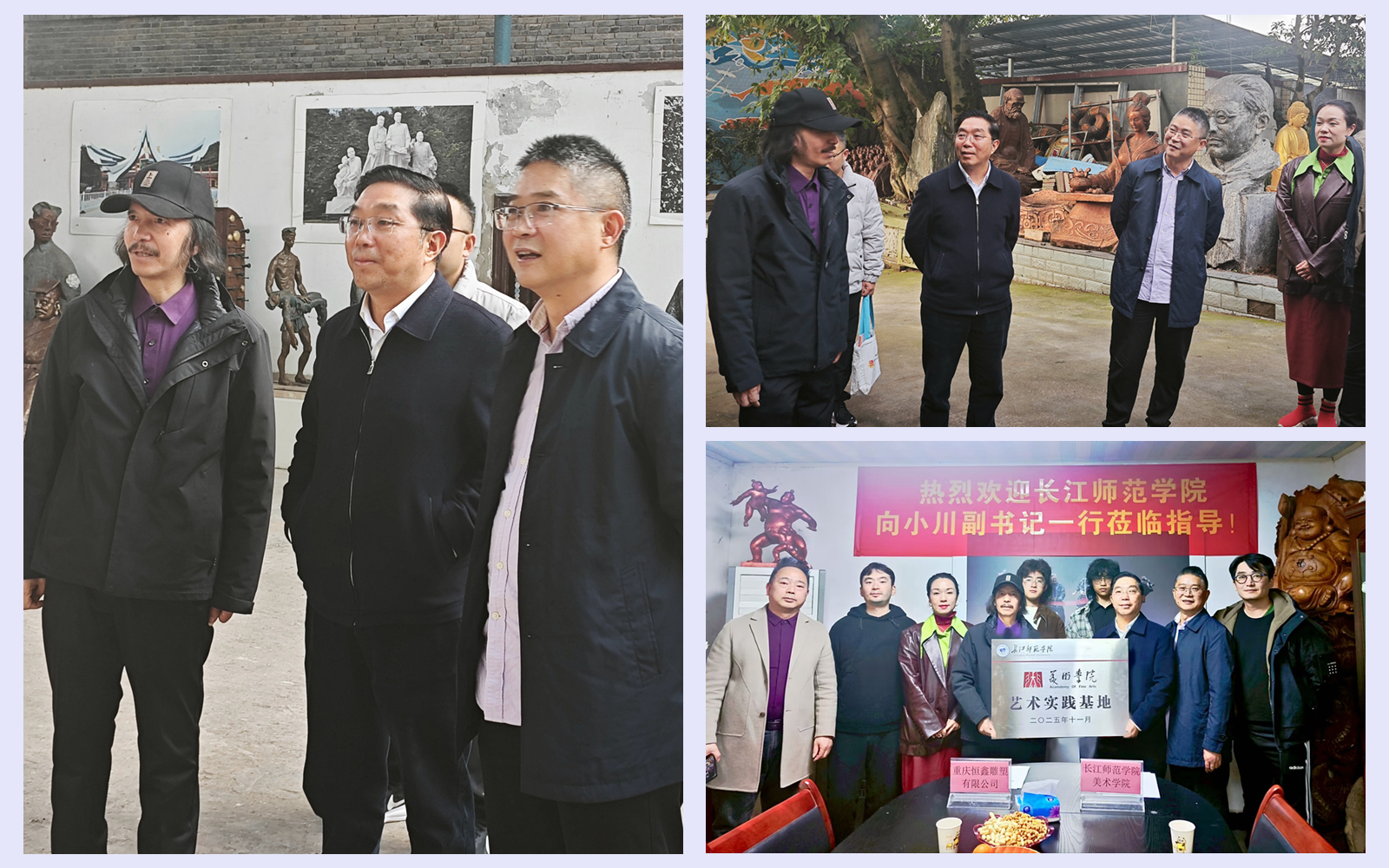 11 月 26 日,党委副书记向小川带队赴重庆恒鑫雕塑有限公司开展访企拓岗,公司负责人邓刚热情接待。美术学院主要负责人及师生代表参加活动。