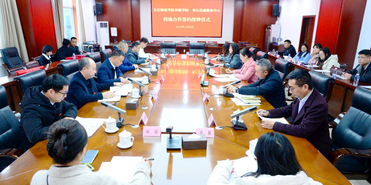同时,吴文一行还赴秀山县融媒体中心,实地考察了中心整体运营情况,认真听取了中心关于整体工作的新思考,特别是当前媒体融合发展形势下的人才需求与技术赋能需求,并现场签订地合作协议、授牌实习实践就业基地,同步启动“双聘机制”。吴文介绍了长师的办学历史、特色优势、近年来取得的发展成就、相关专业设置以及创新人才培养机制,期待与秀山县融媒体中心围绕“共建实践教学基地、共育行业急需人才、共享资源协同创新、共促人员交流互聘”等重点方向,建立长期、稳定、深入的合作关系,实现校地双方互利共赢,共同为区域经济社会发展贡献力量。