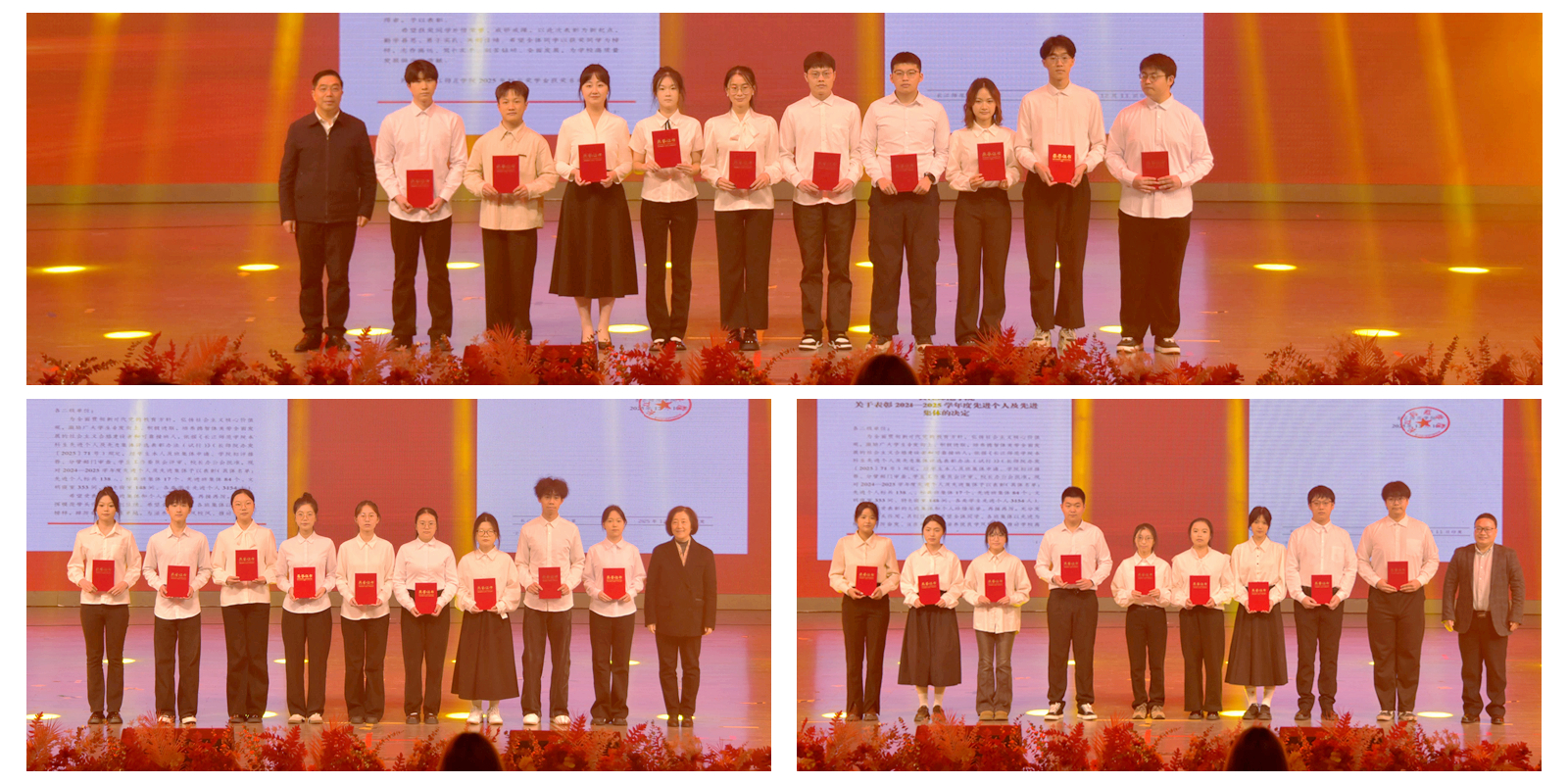 晚会上,向小川为获得2025年校长奖学金的学生代表颁奖,夏英为获得2024-2025年度先进集体表彰的学生代表颁奖,许俊强为获得2024-2025年度先进个人表彰的学生代表颁奖。